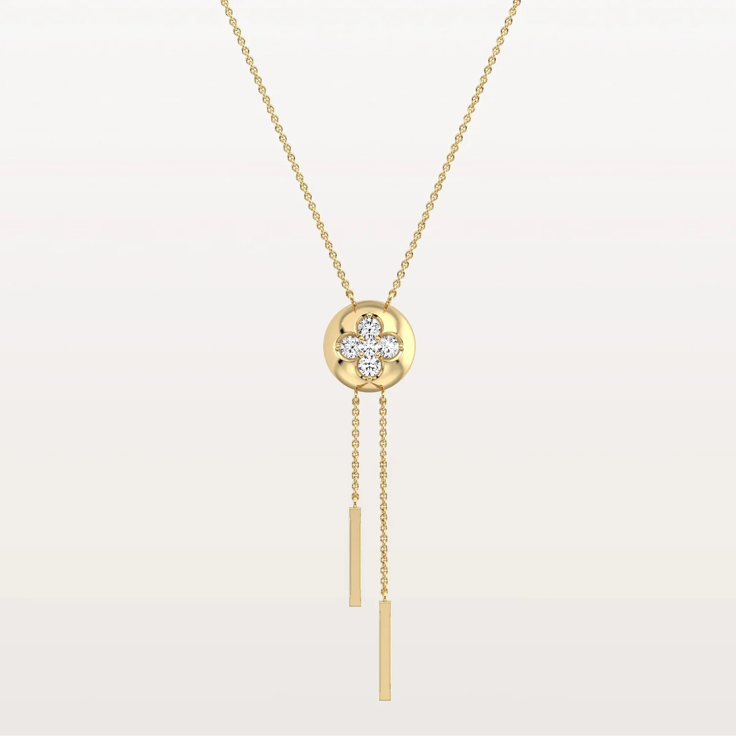Hanging from the center portion of the solid gold chain are shimmering round lab grown diamonds . It looks incredible worn solo or added to a layered look.