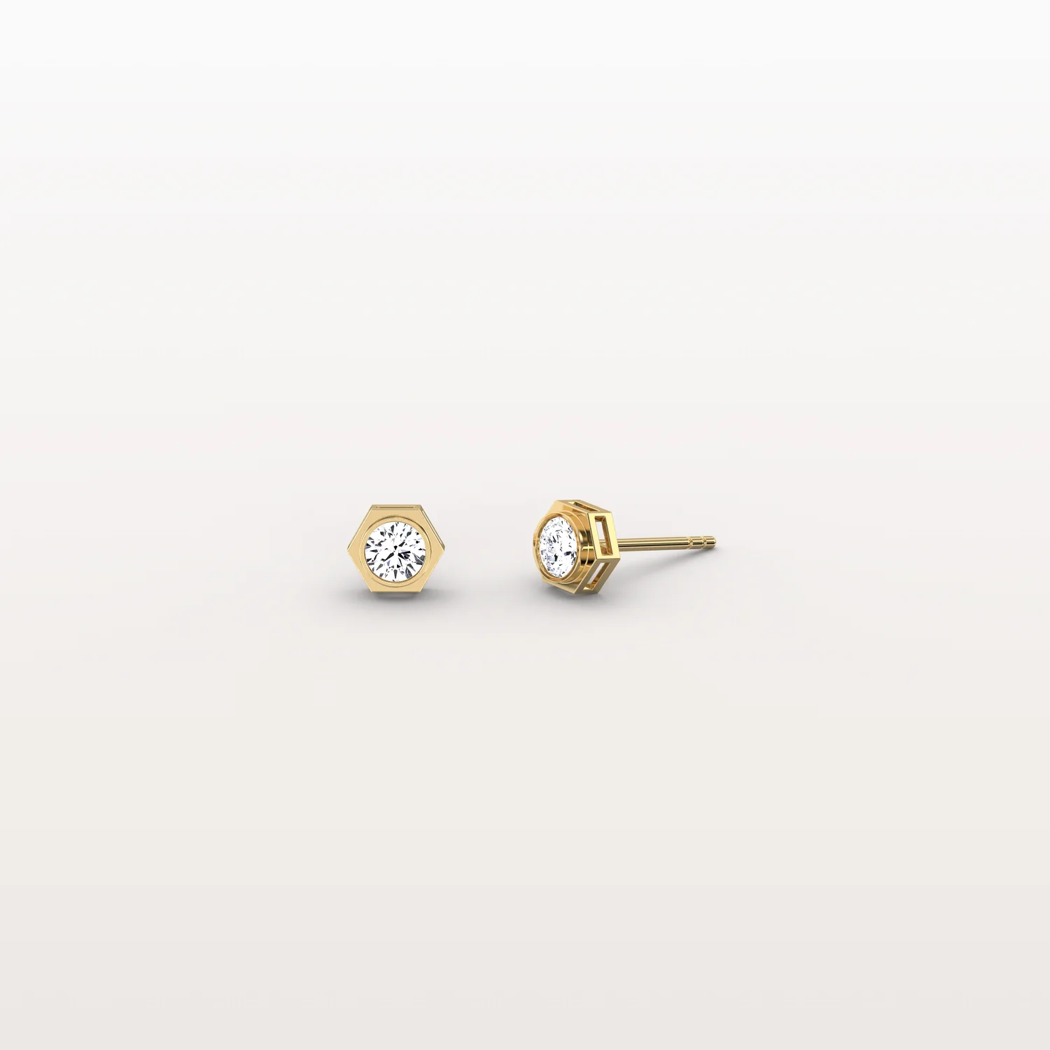 Inspired by symmetry and strength, these hexagon studs radiate quiet confidence. Set with lab grown diamonds and finished in warm 14K gold, theyre a timeless expression of modern love—delicate, intentional, and endlessly versatile.