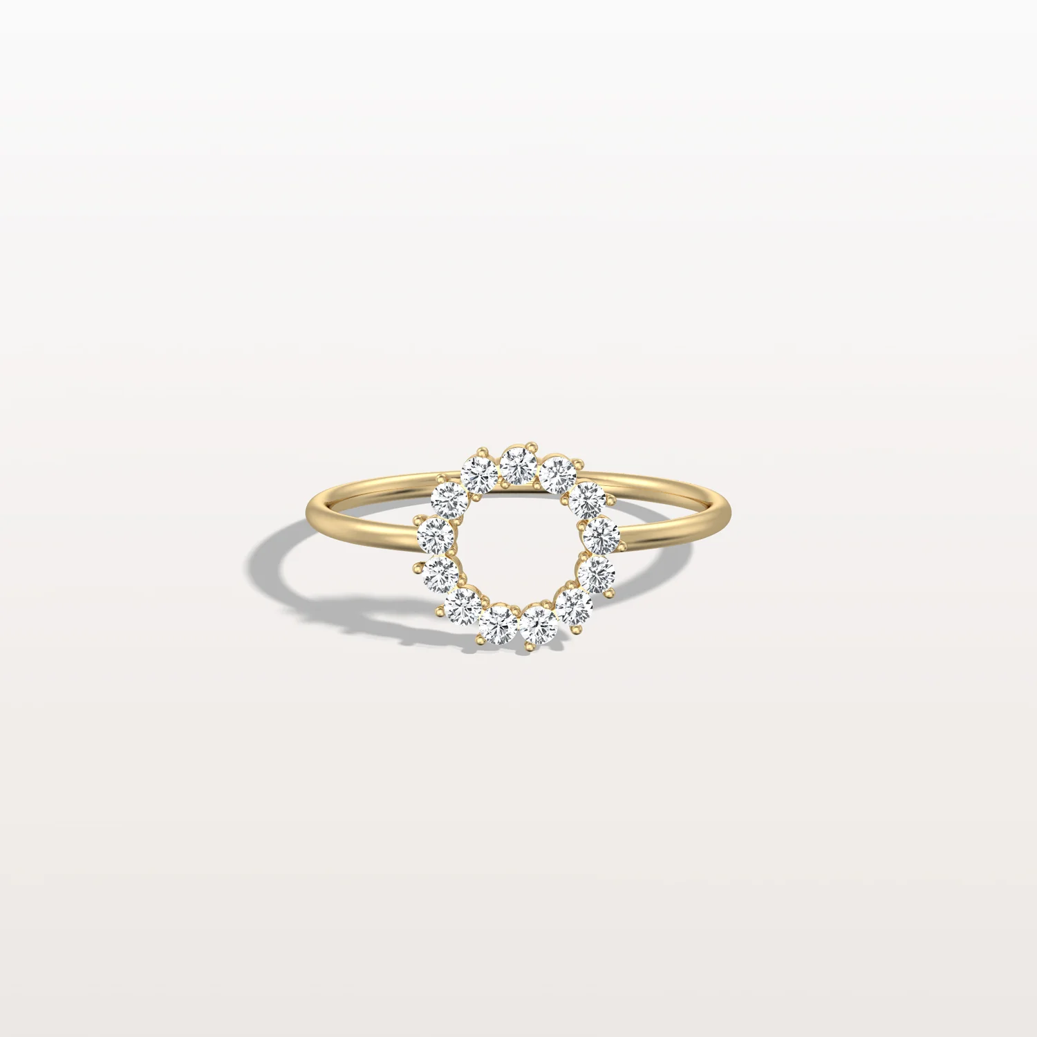 This luminous band features a row of lab diamonds extending three-fourths of the way down the shank in a French pavé setting style that allows light to reach the diamonds from multiple angles and enhances their sparkle